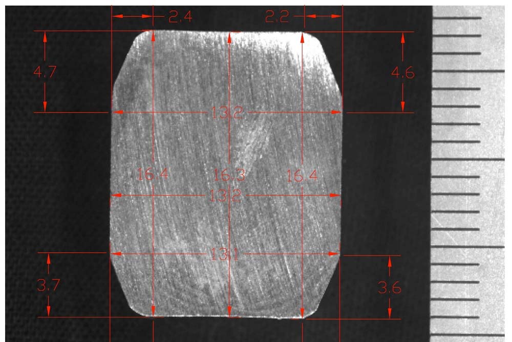 Profile of a stainless steel ring gasket. Dimensions beyond the cited tolerance lead to improper seating.